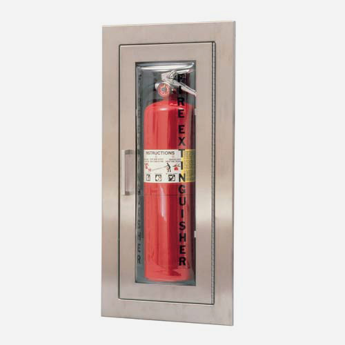 These Cameo Series Cabinets feature a nominal inside box dimension of 24 inches (60.9 cm) height, 9.5 inches (24.1 cm) width and 3.5 inches (8.9 cm) depth. Along with the 3.5 cabinet depth, the door features a cylindrical bubble to accommodate a 10 lb ABC Fire Extinguisher.